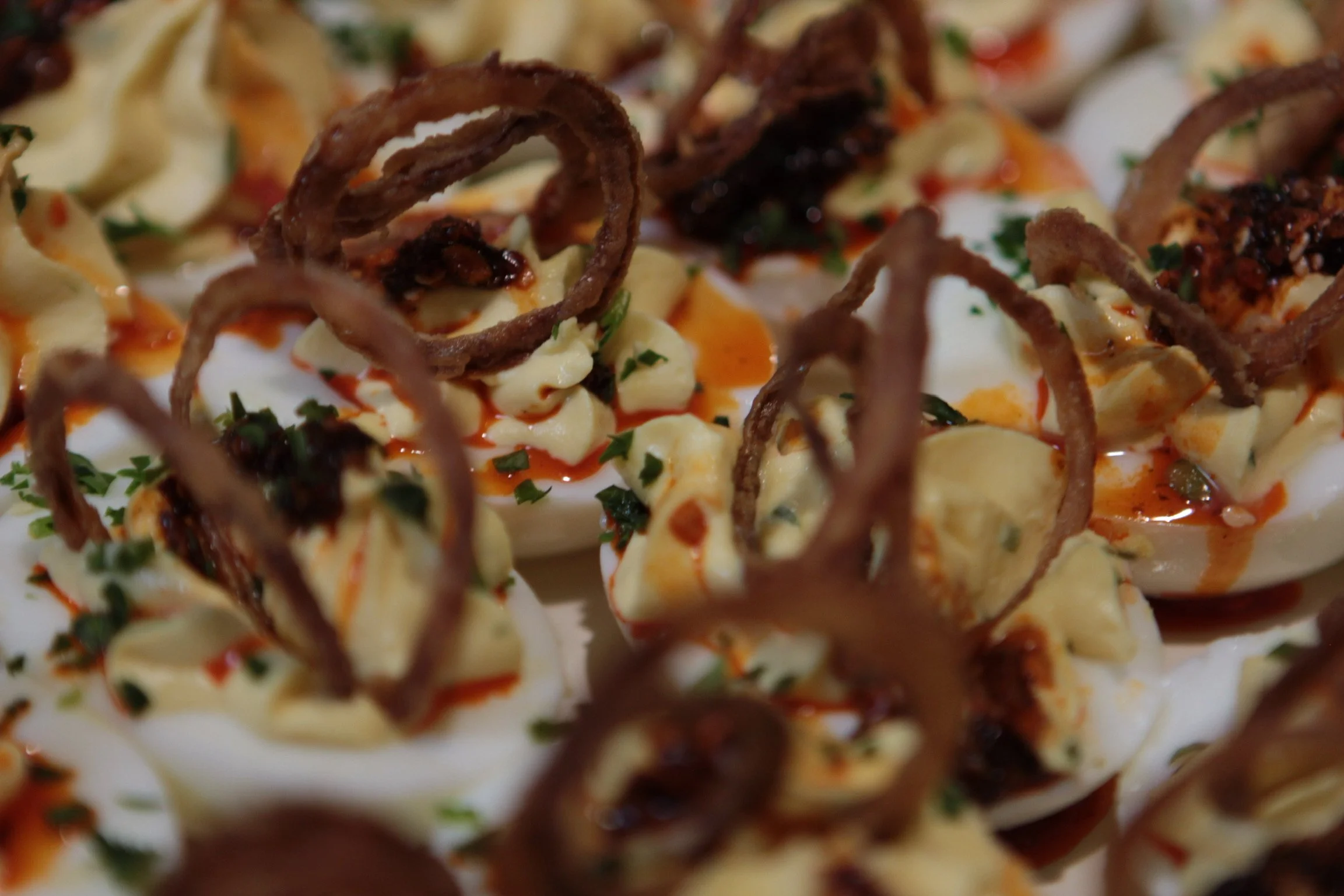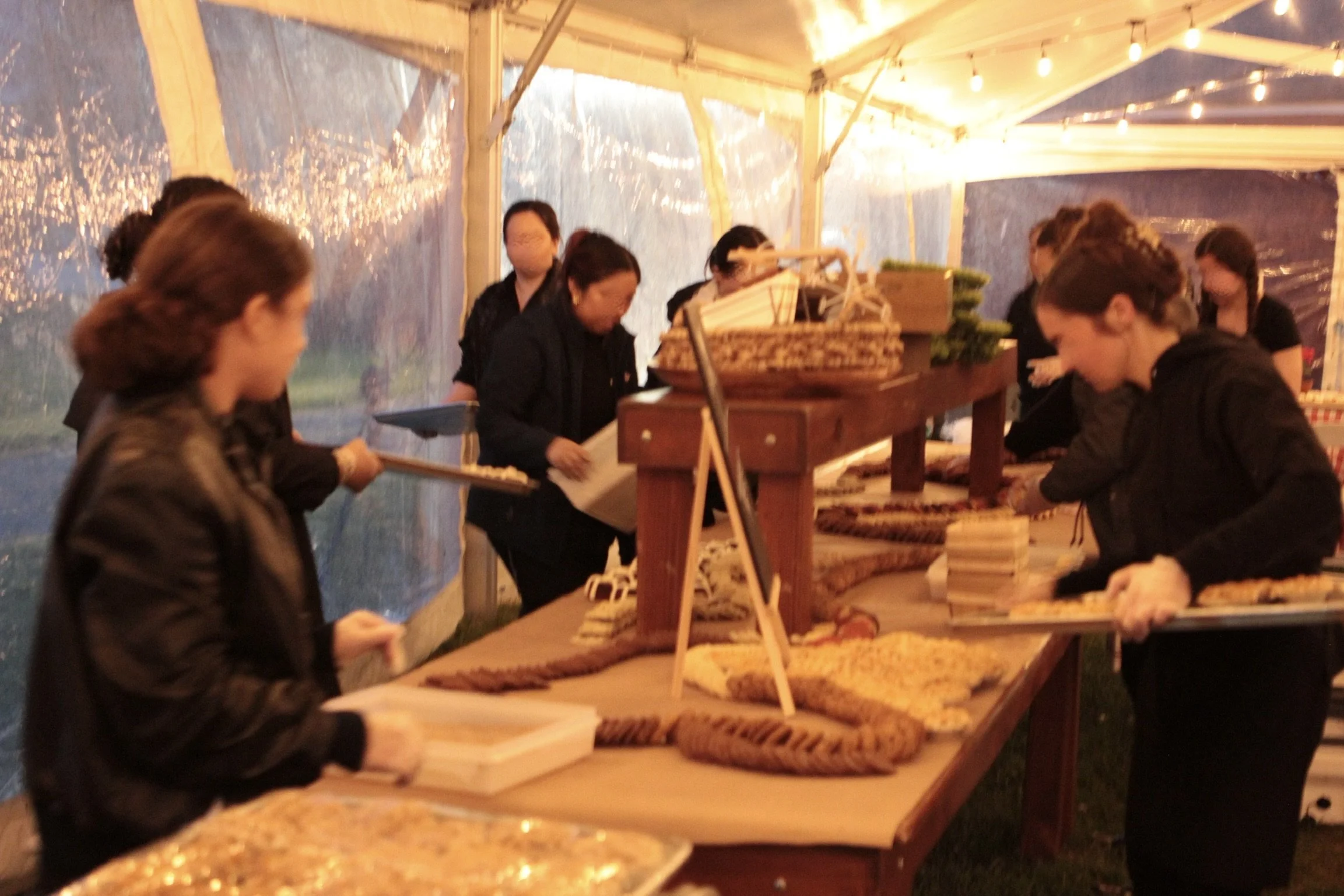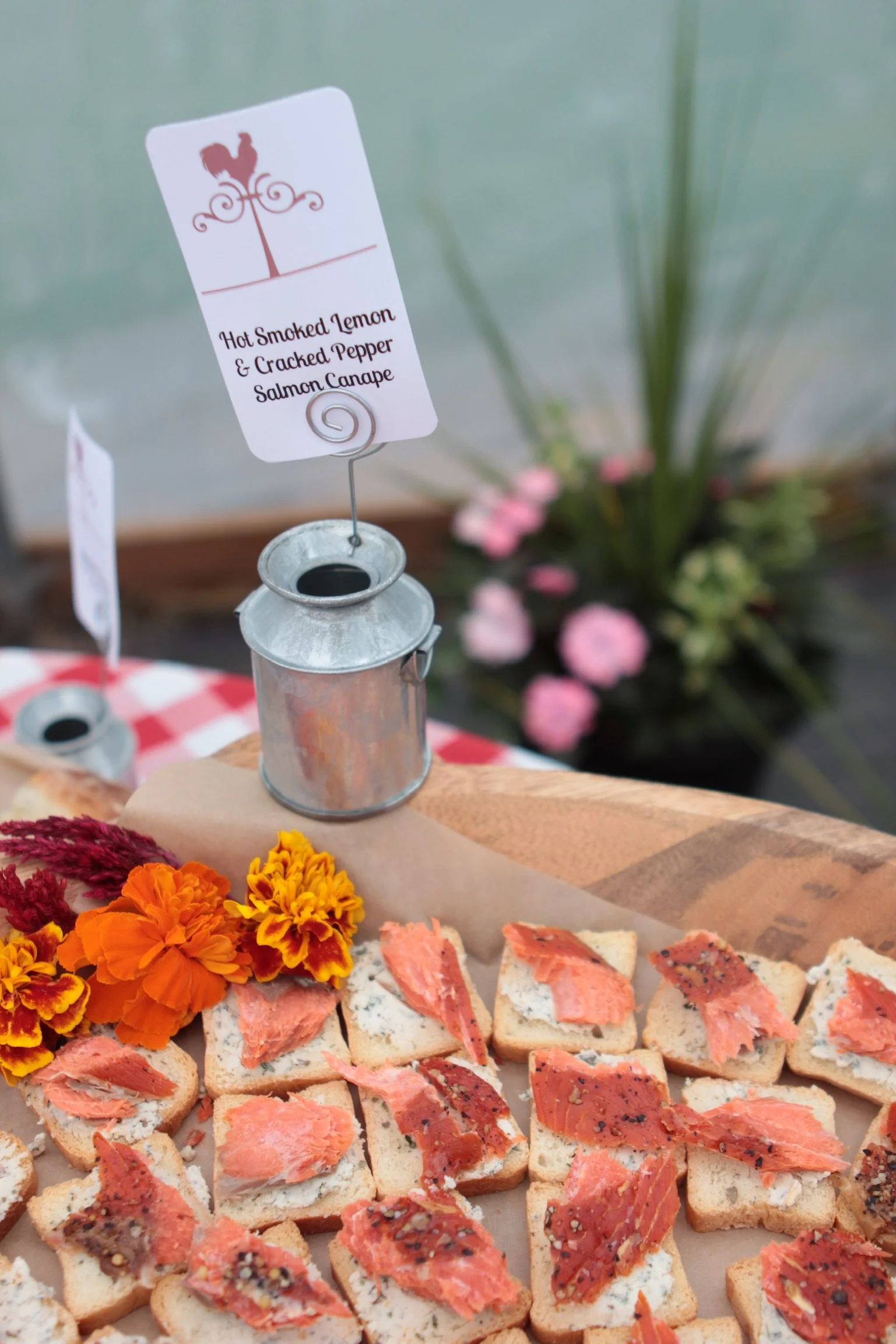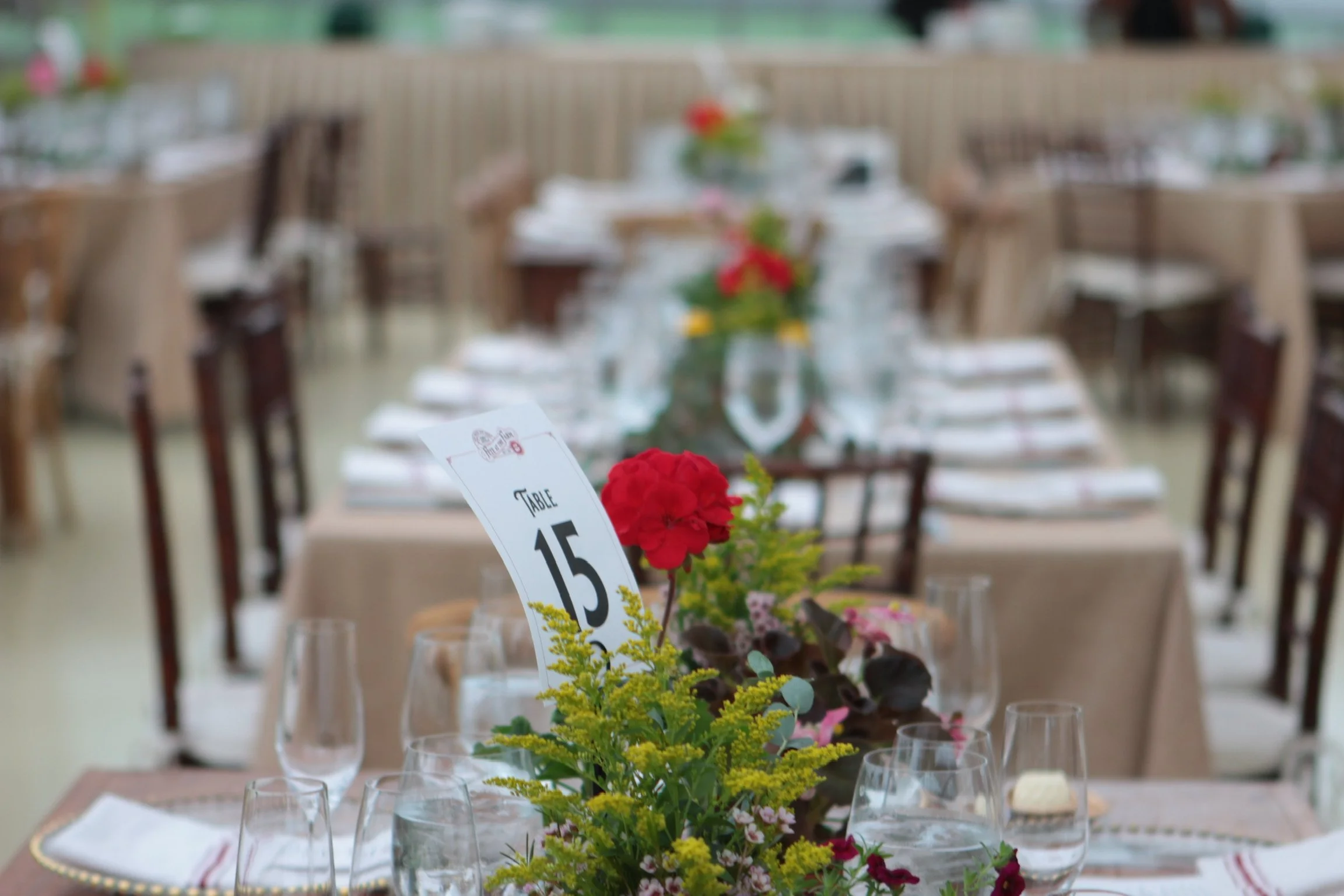 The State Theatre New Jersey held their annual gala at Suydam Farms in 2022. Originally planned as a picturesque journey throughout the historic farm in Somerset, NJ, the event featured cocktail hour food stations scattered across various locations, each accompanied by live music. Following this, a buffet-style dinner, complete with a risotto action station and Tomahawk steak carving station, was set up in the greenhouse. To ensure optimal freshness, all food was prepared onsite using commercial cooking equipment housed in a barn and food tent.